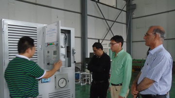 國外友人來我公司考察,公司領導及市場部人員陪同客戶參觀了公司車間,并詳細講解了公司生產(chǎn)的七電平中壓變頻裝置、油井動態(tài)節(jié)能裝置等產(chǎn)品的生產(chǎn)工藝流程……